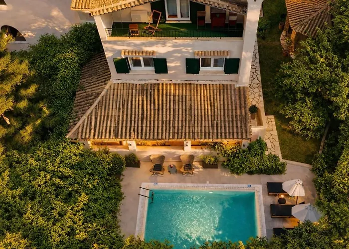 La Villa Butterfly - Private Villa With Private Heated Pool And Private Spa Facilities Alepou, que ofrece hammam, bañera de hidromasaje y sauna, se encuentra a poco más de 25 minutos a pie de la Iglesia de San Espiridión.